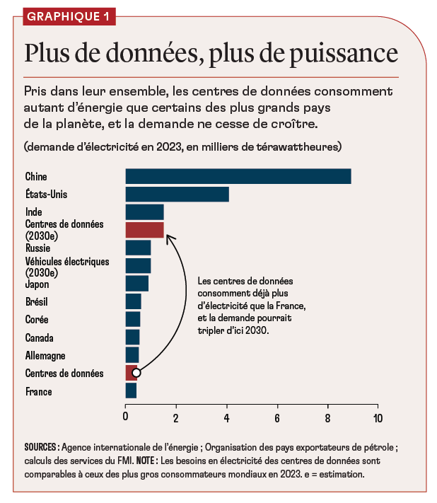 Il ne s’agit pas simplement d’une compétition numérique, c’est une course très concrète aux électrons, aux litres d’eau, aux tranches de semi-conducteurs et aux minerais. La gestion de ces enjeux fondamentaux par les pouvoirs publics et les entreprises déterminera non seulement qui seront les maîtres de l’IA, mais aussi qui profitera de ses gains et pour combien de temps.Les opinions exprimées dans la revue n’engagent que leurs auteurs et ne reflètent pas nécessairement la politique du FMI.
