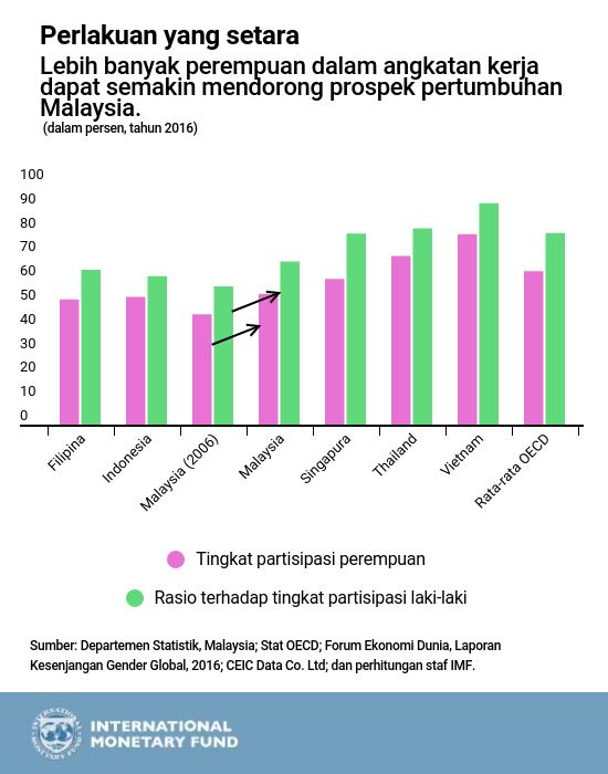 Fokus Negara IMF: Anda menyebutkan bahwa meningkatkan kebijakan pasar tenaga kerja, seperti mendorong lebih banyak perempuan untuk memasuki lapangan kerja formal, dapat membantu mengamankan prospek pertumbuhan jangka panjang Malaysia. Bagaimana hal ini menguntungkan ekonomi?