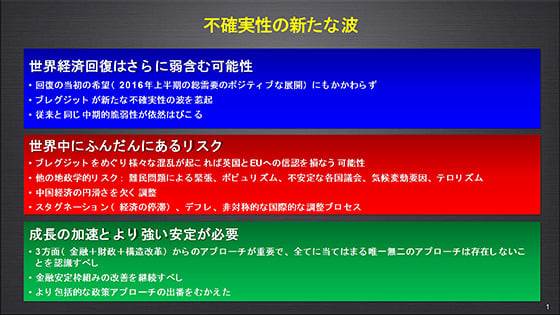 特に英国とEUの政策担当者が、欧州や他の地域の成長をさらに阻害し得る不確実性を抑制する上で主要な役割を負う、とIMFは考えている。そして、これらの政策担当者に「従来の英国とEU間の貿易による利益を最大限維持できるようなブレグジット後の貿易及び金融での新たな関係への円滑で予見しやすい移行」を達成するようIMFは求めている。