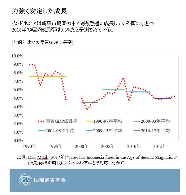 インドネシア経済は堅調に成長し続けており、2018年の経済成長率は5.3%だと予測されている。IMFがインドネシア経済を対象に行った最新の評価に基づくと、こうした成長の主な理由は、投資が加速しており、一次産品価格が上昇していることである。