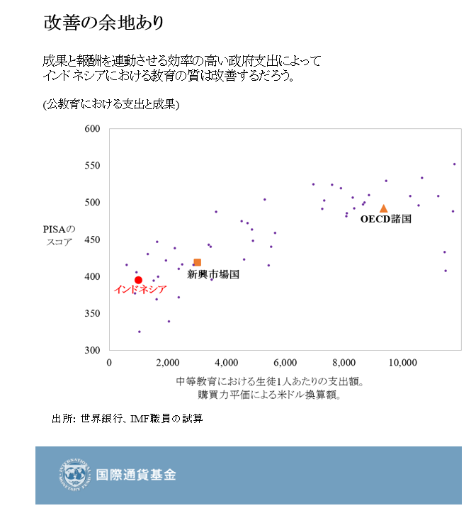 5. 若年層に優れた雇用機会を提供する上では、教育の質の改善と労働規制の緩和が非常に重要になる。近年に改善は見られたものの、インドネシアにおける教育の質は低いままだ。教育の質を改善するには、教育セクターで成果と報酬の関係をより明確にすることによって、支出の効率性を高める必要がある。こうした施策によって節約できる費用と新たな資源は、特に農村部において、高品質の教育を受ける機会の拡大に用いることできる。職業訓練や職業紹介を強化しつつ、解雇手続や解雇手当など雇用を守る厳格な規制を効率化することで、若年層の雇用を促進し、短期契約の利用を減らすことができるだろう。