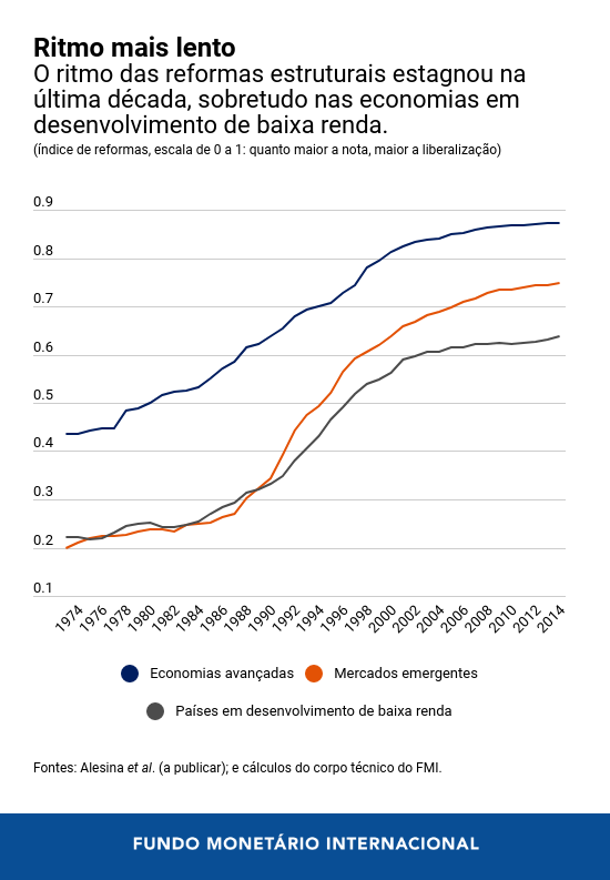 Apesar desta desaceleração refletir a geração anterior de reformas, como no caso das economias avançadas, ainda há ampla margem para uma nova onda reformas, sobretudo nas economias em desenvolvimento – especialmente na África Subsaariana e, em menor grau, no Oriente Médio e Norte de África e na região Ásia‑Pacífico.