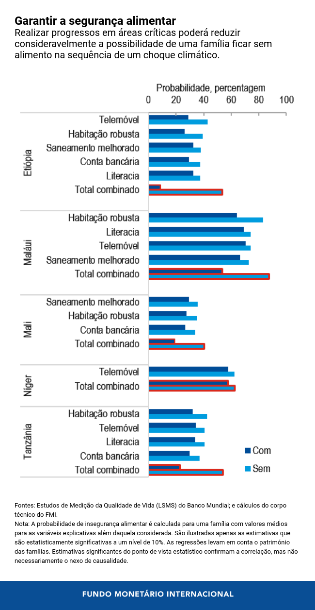 Por exemplo, os progressos nos domínios das finanças, telecomunicações, habitação e saúde podem reduzir em 30% a possibilidade de uma família enfrentar escassez de alimentos: