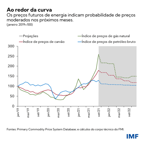 Além disso, a expectativa é que os preços do gás natural se normalizem até o segundo trimestre, quando o final do inverno na Europa e na Ásia alivia as pressões sazonais, conforme indicam os mercados de futuros. Também é provável que caiam os preços do carvão e petróleo bruto. O nível de incerteza continua alto, porém, com a possibilidade de que pequenos choques de demanda desencadeiem novos aumentos súbitos de preços.