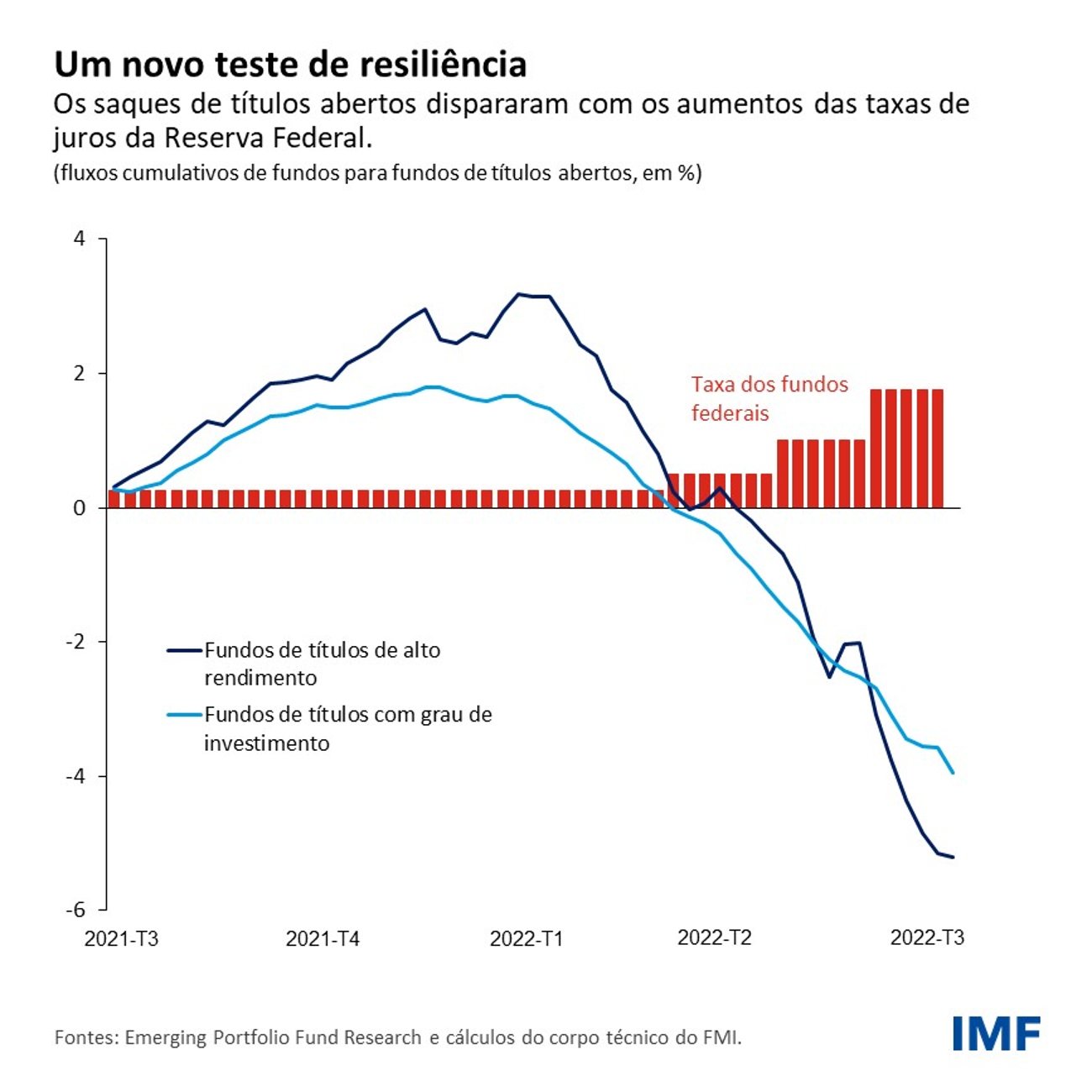 Agora, podemos estar diante de um novo teste de resiliência do setor de fundos abertos, desta vez em meio à escalada das taxas de juros e incerteza econômica elevada. Os saques de fundos de títulos abertos aumentaram nos últimos meses, e um choque desfavorável súbito, como um aperto desordenado das condições financeiras, poderia desencadear mais saques e intensificar as tensões nos mercados de ativos.