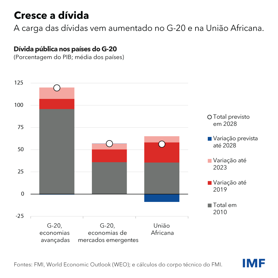 É complicado encontrar o equilíbrio certo, pois os juros mais altos e os custos do serviço da dívida pressionam os orçamentos, deixando menos espaço para os países oferecerem serviços essenciais e investirem nas pessoas e em infraestrutura. Todo esforço para reduzir a dívida e os déficits deve ter como base planos fiscais de médio prazo confiáveis. Também convém tomar medidas para minimizar o impacto sobre as famílias pobres e vulneráveis e, ao mesmo tempo, proteger os investimentos prioritários.