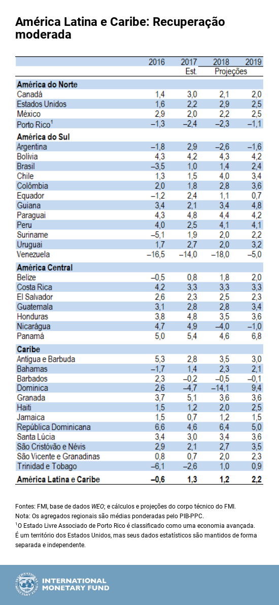 No relatório Perspectivas Econômicas: As Américas , o FMI reduziu suas previsões de crescimento da América Latina e Caribe para 1,2% em 2018 e 2,2% em 2019, em comparação aos números divulgados em maio de 2018 (2,0% e 2,8%, respectivamente).