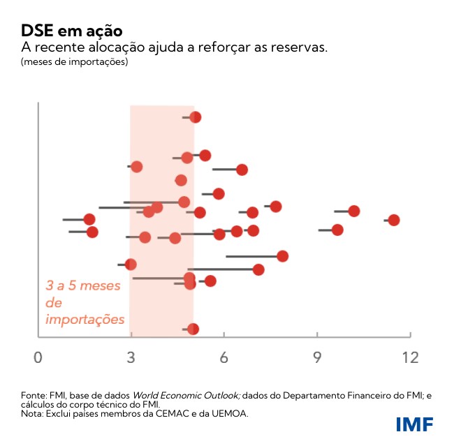 - A cooperação internacional continua a ser crucial. Sem ajuda financeira e técnica externa, as vias de recuperação divergentes entre a África Subsariana e o resto do mundo podem se tornar fissuras permanentes, pondo em risco décadas de progresso duramente conquistado. Até agora, organizações internacionais e doadores têm-se mobilizado rapidamente para apoiar a região. Em termos futuros, a canalização voluntária de Direitos de Saque Especiais (DSE) de países com posições externas fortes para os mais necessitados pode aumentar ainda mais o impacto da nova alocação de DSE. Se forem bem utilizados, estes recursos poderão moldar a via de recuperação pós pandémica da região.