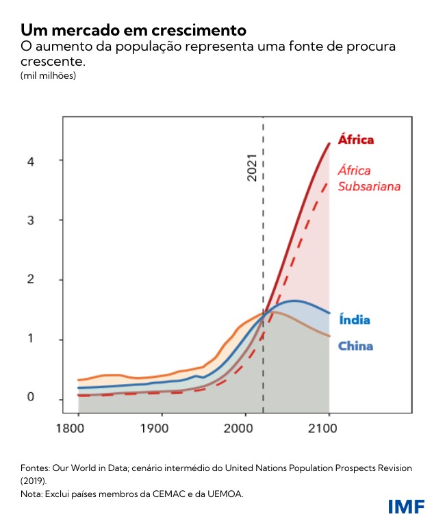 - Apesar dos anos difíceis que se avizinham, o potencial da região como fonte de procura mundial permanece inalterado. Nas próximas três décadas, a população mundial deverá aumentar em cerca de 2 mil milhões. Metade desse crescimento terá lugar na África Subsariana, uma vez que se prevê que a população da região duplique de cerca de mil milhões para 2 mil milhões de pessoas. Isto confere à região o potencial de uma das economias mais dinâmicas do mundo e um dos seus mercados mais importantes.
