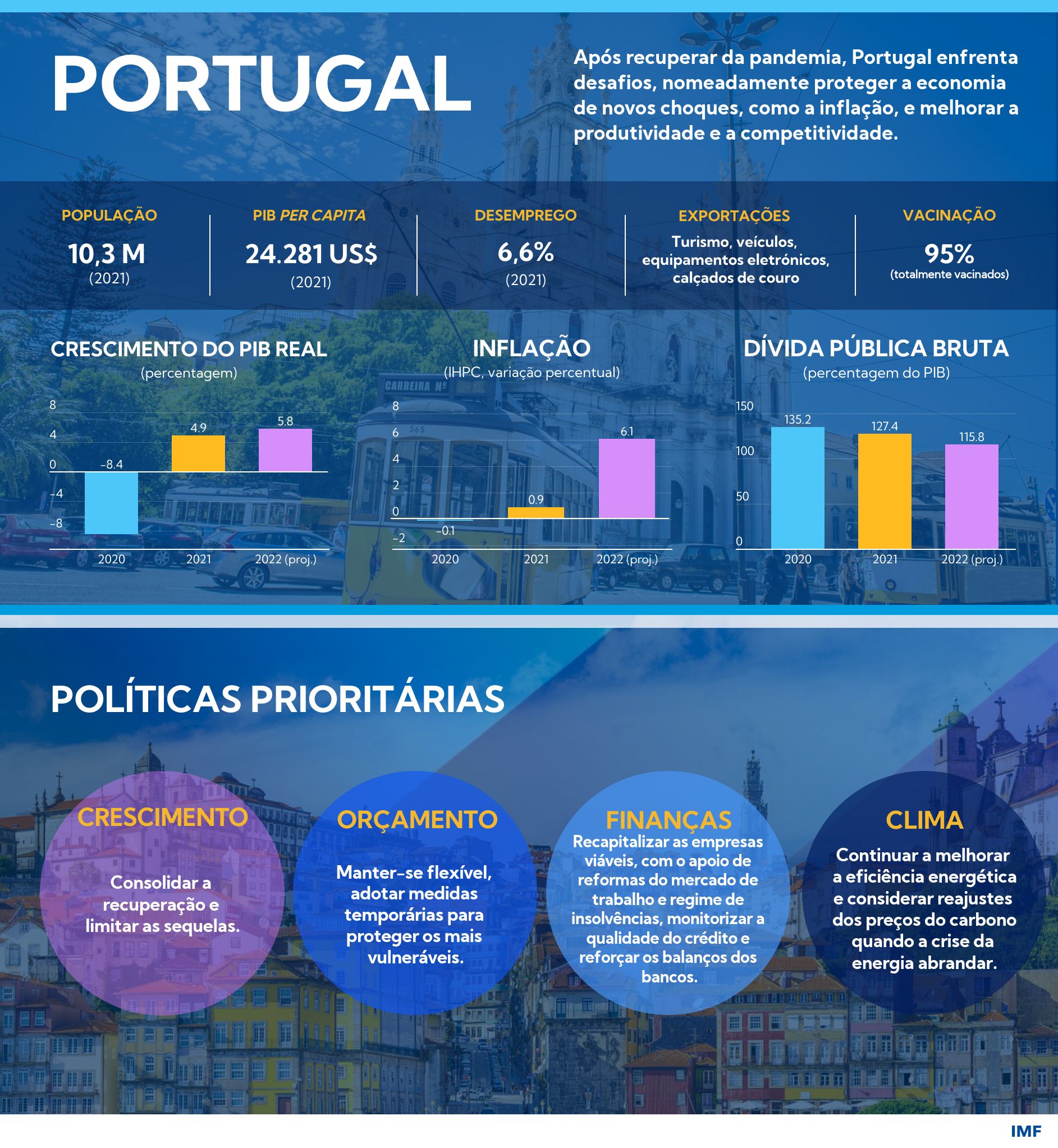 Após uma profunda recessão causada pela pandemia, a economia portuguesa cresceu em 2021, tendo o PIB ultrapassado o seu nível pré-pandémico no primeiro trimestre de 2022. A recuperação foi impulsionada por uma forte procura interna e por uma retoma do turismo no segundo semestre de 2021, sustentada por uma das maiores taxas de vacinação do mundo. O amplo apoio da política económica permitiu ao país sustentar o crescimento do emprego e do rendimento e manter a estabilidade financeira.