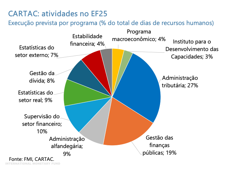 A segunda modalidade dos serviços que o FMI presta a seus países membros é o desenvolvimento das capacidades. Nesse caso, oferecemos análise técnica e assessoria em política econômica sob medida para questões específicas que os países possam estar enfrentando. Por exemplo, a formulação de medidas de política fiscal, o aumento da eficiência dos gastos públicos, a otimização da gestão da dívida pública, o reforço da capacidade dos órgãos de estatística e o desenvolvimento de ferramentas de política monetária, para citar alguns. Nessa modalidade, também oferecemos cursos para autoridades e servidores públicos por meio de instituições regionais, como o Centro Regional de Assistência Técnica do Caribe (CARTAC), e também na sede do FMI, em Washington, DC.