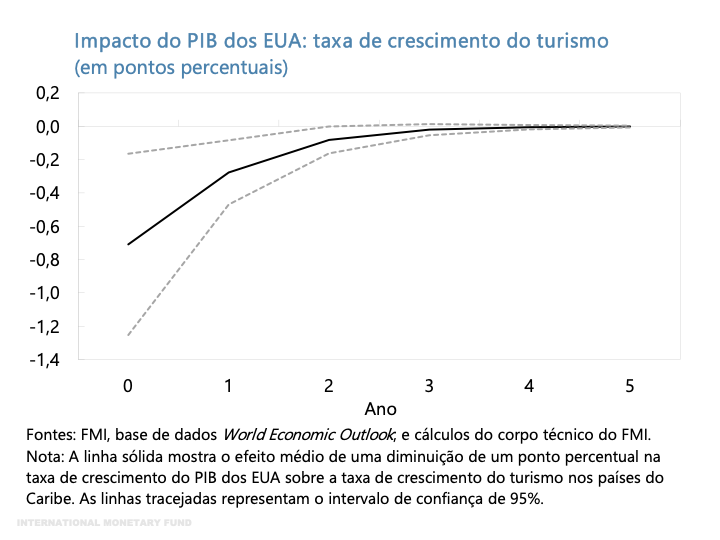 Nas economias dependentes do turismo, em que o crescimento está intimamente ligado à atividade econômica nos Estados Unidos, o impacto dependerá, sobretudo, do volume de turistas americanos.