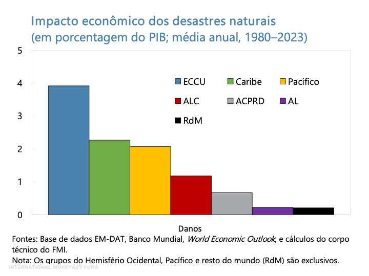 Os grandes desastres naturais custam, em média, 2% do PIB por ano nos países do Caribe e cerca de 4% do PIB nos países do Caribe Oriental.