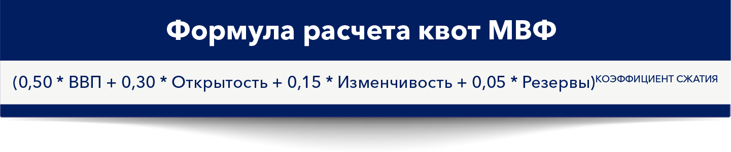 Формула расчета квот используется для оценки относительного положения государств-членов в мировой экономике и может играть определенную роль в руководстве распределением увеличения квот. Действующая формула была согласована в 2008 году.