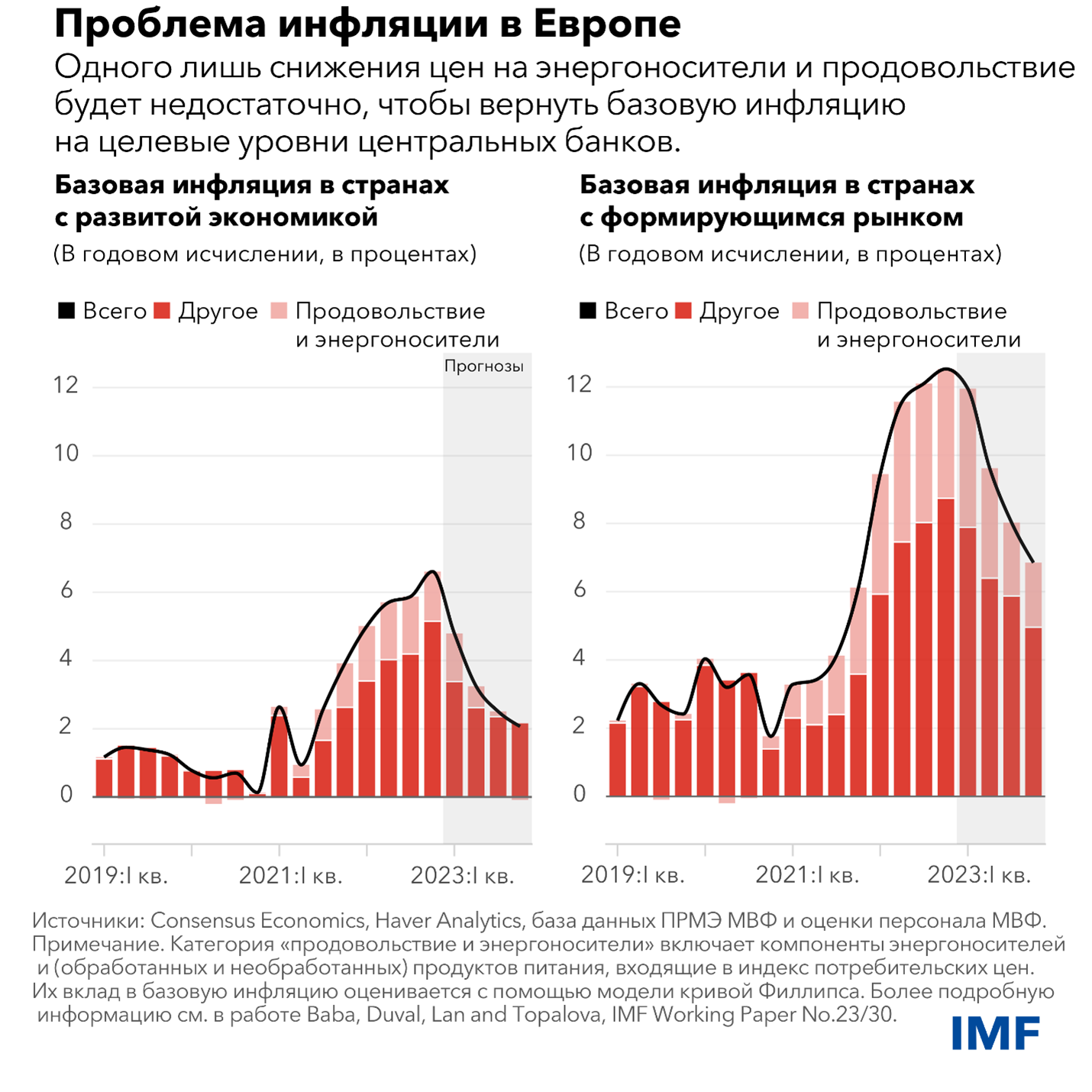 После уверенного выхода из пандемии Европа столкнулась с тяжелыми экономическими последствиями вторжения России в Украину. Темпы роста резко замедлились, инфляция сильно возросла, и материализовались эпизоды финансового стресса. Однако благодаря решительным мерам политики большинство стран, хотя и были близки к рецессии, все же смогли избежать ее этой зимой. Теперь перед Европой стоит сложная задача — поддержать восстановление, победить инфляцию и сохранить финансовую стабильность.