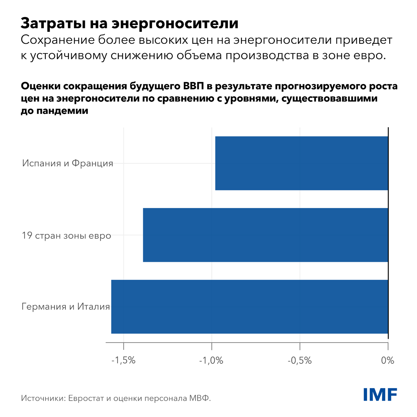 Мы также все еще можем недооценивать, в какой степени два возникших один за другим кризиса — COVID-19 и энергетический кризис — нанесли ущерб производственному потенциалу Европы и дополнительно повысили инфляционные риски. Хотя за последний год компании нашли способы повысить энергоэффективность, сохранение более высоких цен на энергоносители в среднесрочной перспективе приведет к сокращению производства в зоне евро в среднем более чем на 1 процент, причем в странах с более энергоемкой экономикой, таких как Германия или Италия, потери будут более значительными.