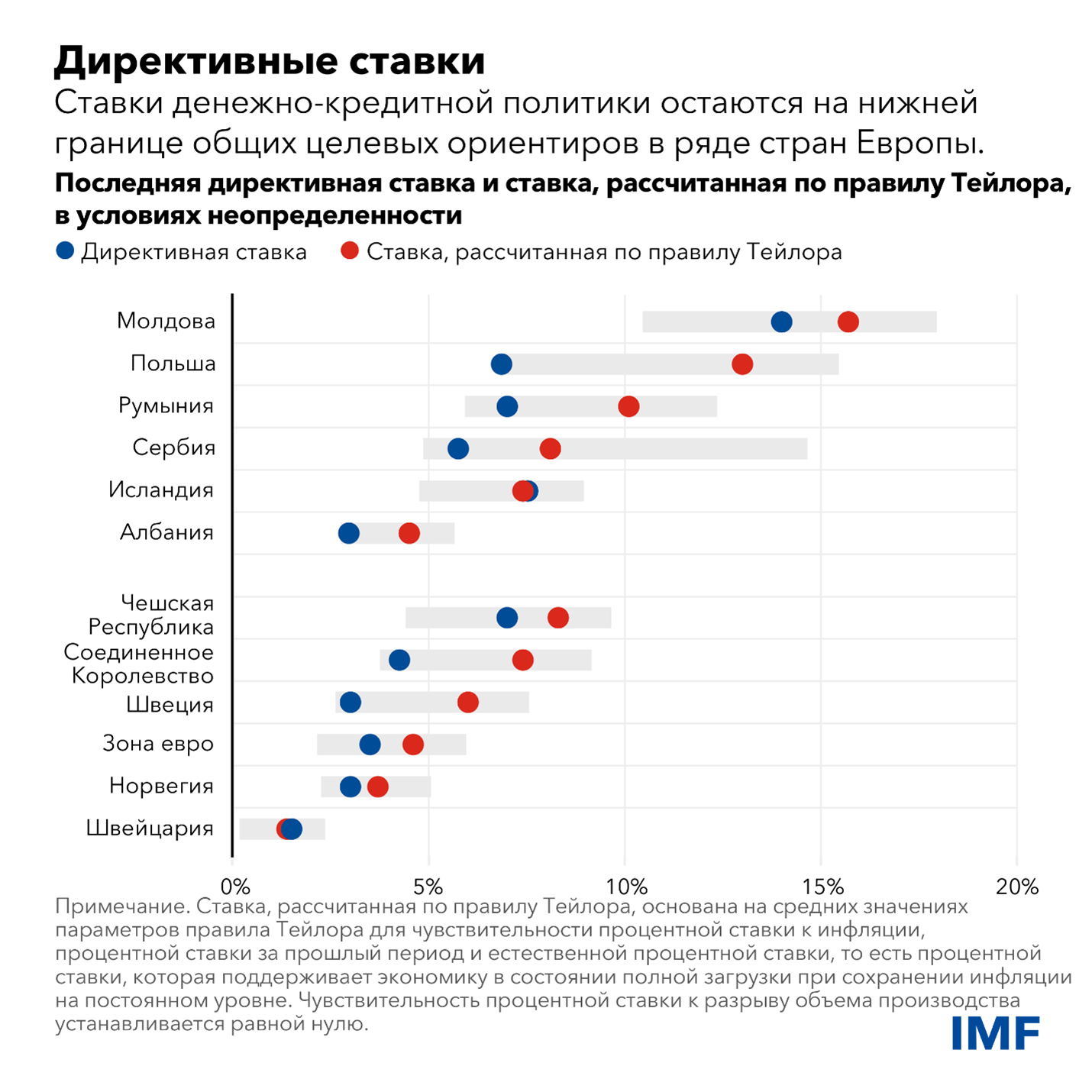Аналогичным образом, в ситуации неопределенности уровней незадействованных экономических мощностей разработчики денежно-кредитной политики должны уделять больше внимания инфляции и динамике рынка труда, а эти факторы на данном этапе свидетельствуют в пользу повышения процентных ставок. Кроме того, даже с учетом повышенной неопределенности директивные ставки в ряде стран близки к нижней границе общепринятых целевых ориентиров, что говорит о том, что для обуздания инфляции могут потребоваться более высокие ставки.