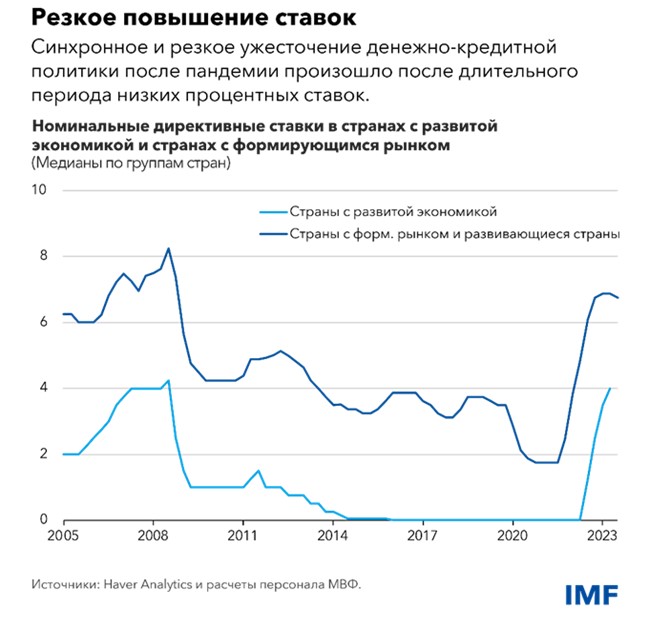 За последние два года центральные банки значительно повысили процентные ставки в целях борьбы с инфляцией после пандемии. Многие полагали, что это приведет к снижению экономической активности. Однако темпы роста мировой экономики в целом продолжают быть стабильными, а замедление наблюдается только в некоторых странах.