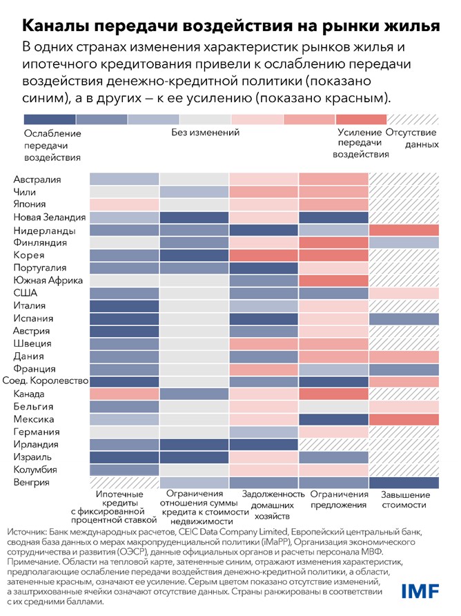 В результате в ряде стран могло ослабнуть или по меньшей мере замедлиться действие каналов передачи денежно-кредитной политики на рынки жилья.