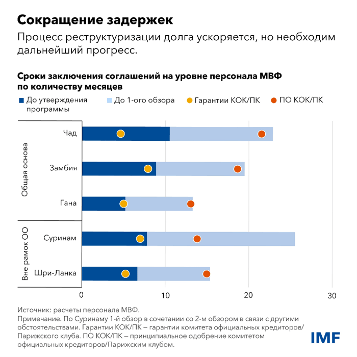 Несмотря на то, что в некоторых случаях реструктуризация суверенного долга происходит со значительными задержками, мы работаем с нашими партнерами над ускорением этого процесса. Прогресс, достигнутый к настоящему времени, показывает, как мир может объединить усилия для снижения рисков.
