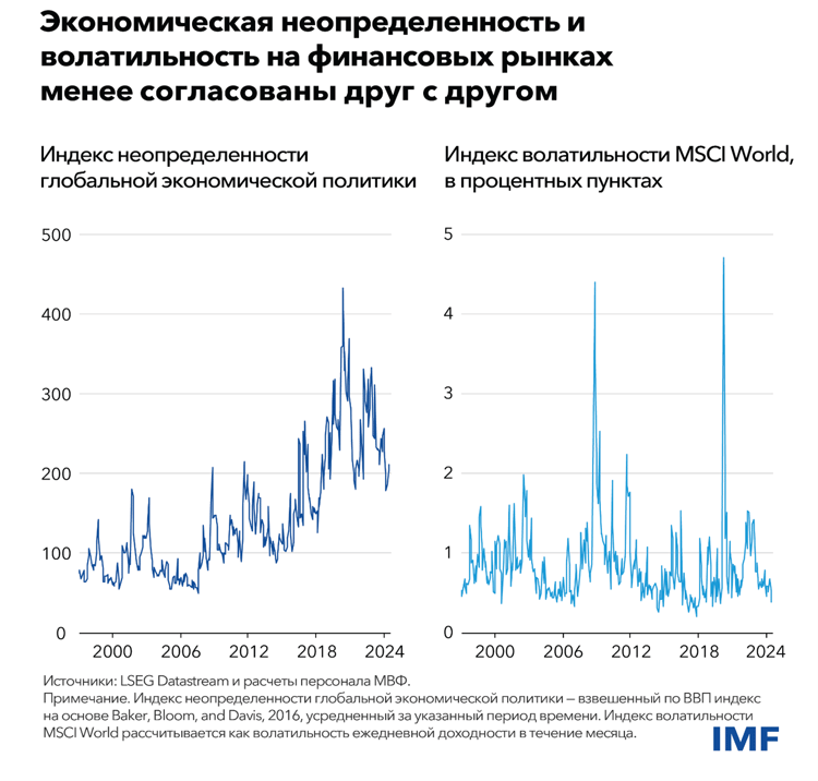 Важное наблюдение состоит в том, что неопределенность по поводу экономики не всегда идет в ногу с неопределенностью, которая проявляется на финансовых рынках. Как показано в главе «Доклада по вопросам глобальной финансовой стабильности», разрыв между высокой экономической неопределенностью и низкой волатильностью на финансовых рынках может сохраняться на протяжении определенного времени. Но если в результате шока на рынке вновь произойдет всплеск волатильности, она может иметь гораздо более широкие последствия для экономики.