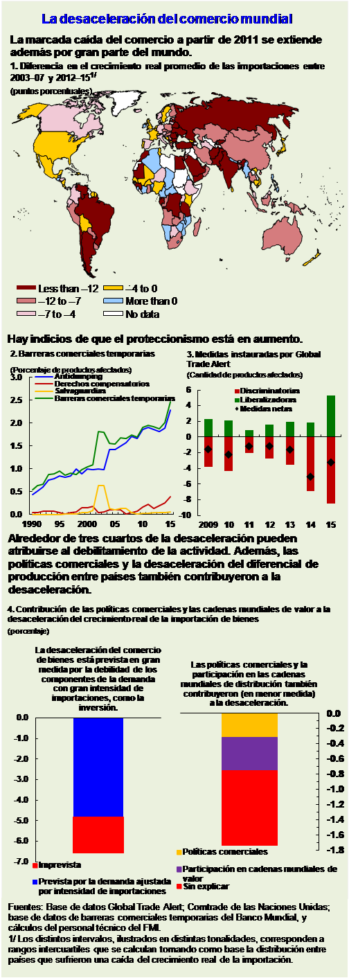Причины такого замедления торговли по-прежнему недостаточно ясны. Сдерживают ли торговлю низкие темпы роста и инвестиций? Или же дальнейшему развитию торговли препятствуют ограничивающие меры политики? В исследовании, опубликованном в « Перспективах развития мировой экономики» за октябрь 2016 года, эти вопросы анализируются исходя из совокупности взаимодополняющих подходов и нового подробного набора данных об объемах торговли с разбивкой по типам продукции.