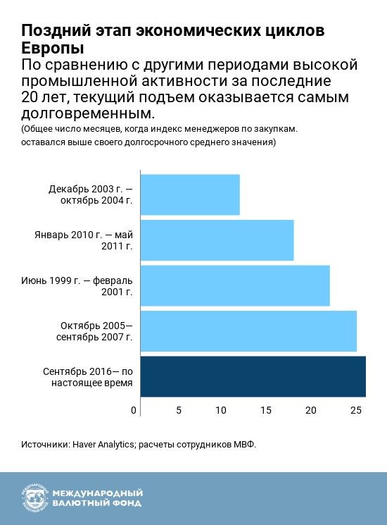 4. Длительный период расширения обрабатывающей промышленности. Обрабатывающая промышленность Европы испытала один из самых длительных периодов подъема за последние два десятилетия. Но с учетом более позднего этапа экономического цикла ограниченность производственных мощностей и дефицит рабочей силы сдерживают рост, особенно в странах Европы с формирующимся рынком. Использование производственных мощностей сейчас выросло до уровней, которые в последний раз наблюдались до мирового финансового кризиса.