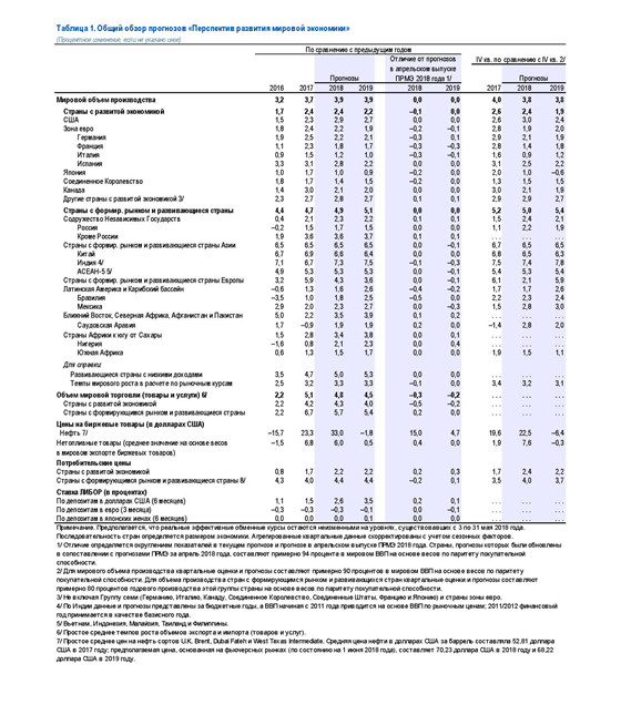 • Прогнозируется, что мировой рост достигнет 3,9 процента в 2018 и 2019