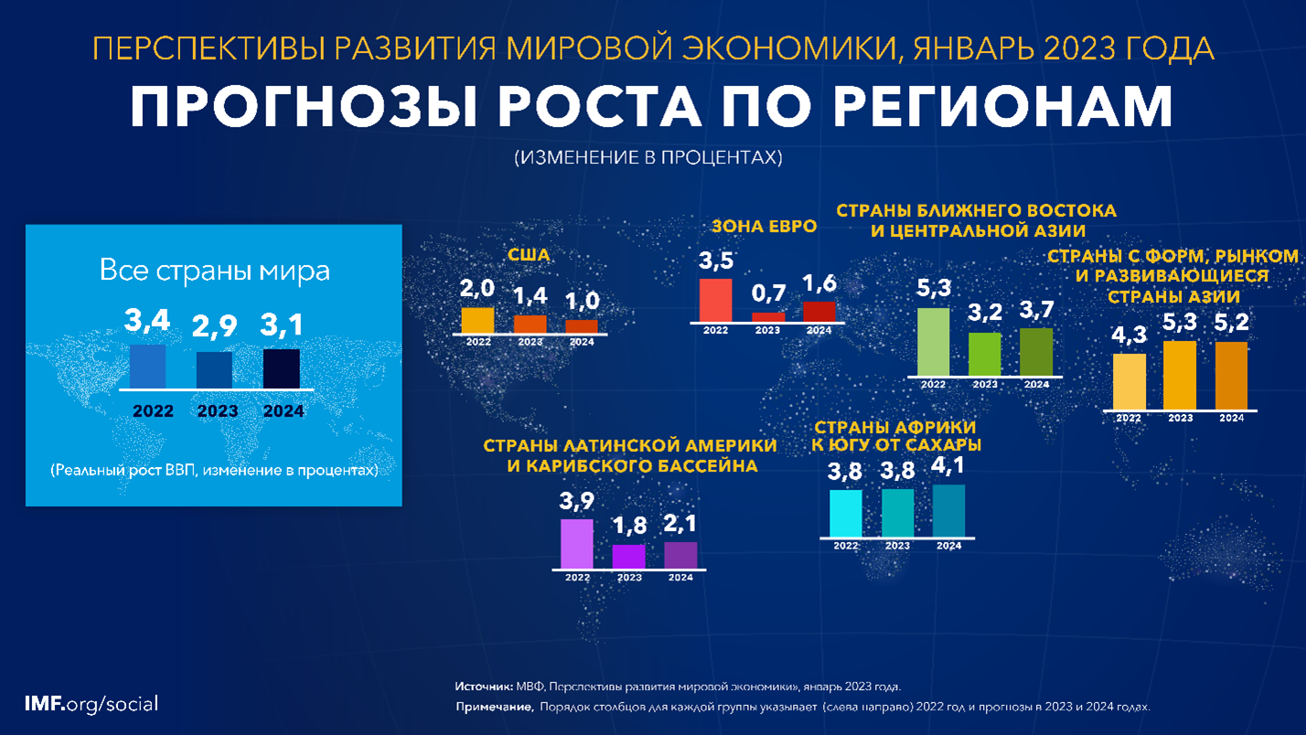 Темпы роста мировой экономики, по прогнозу, снизятся с 3,4 процента (по оценке) в 2022 году