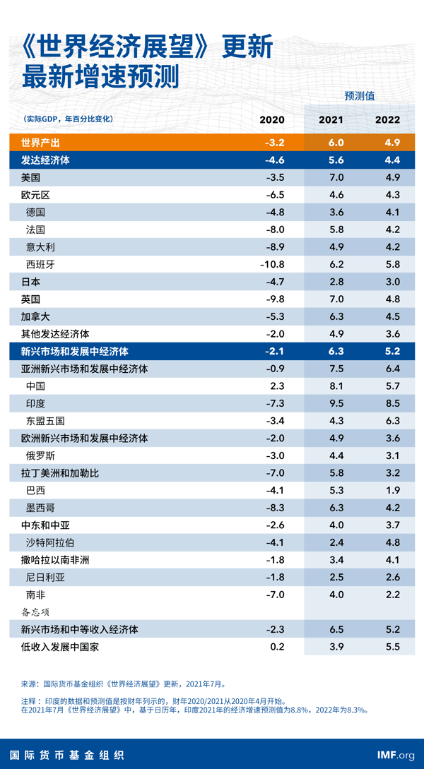 全球经济继续复苏,但发达经济体与许多新兴市场和发展中经济体之间的差距越来越大。根据我们最新的预测,2021年全球经济将增长6%,该增速与上次预测相比没有变化,但其构成却发生了变化。