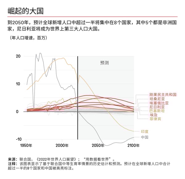 这些国家预计的人口变化和潜在的人口红利将会产生深远的经济影响,甚至可能改变世界秩序,其中一些国家可能发展成为新的世界大国。