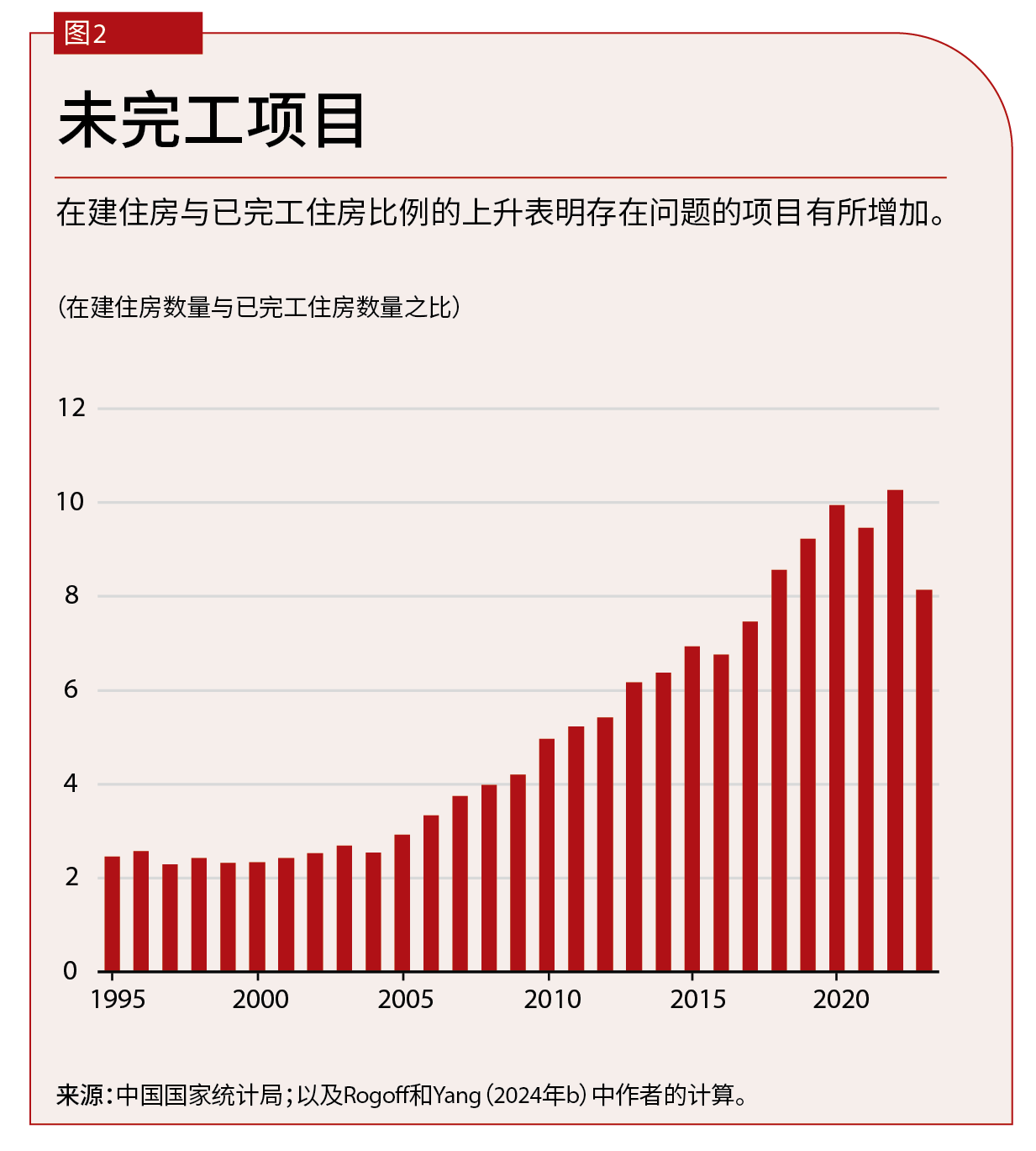 图2展示了另一个衡量紧张程度的指标,即在给定年份中,在建项目与已完成项目的比率。如果该比率逐渐上升,则意味着违约项目增加、买家退出或房产发生争议。虽然我们集中讨论的是房地产,但有许多指标显示,中国部分地区的基础设施也已经过剩。