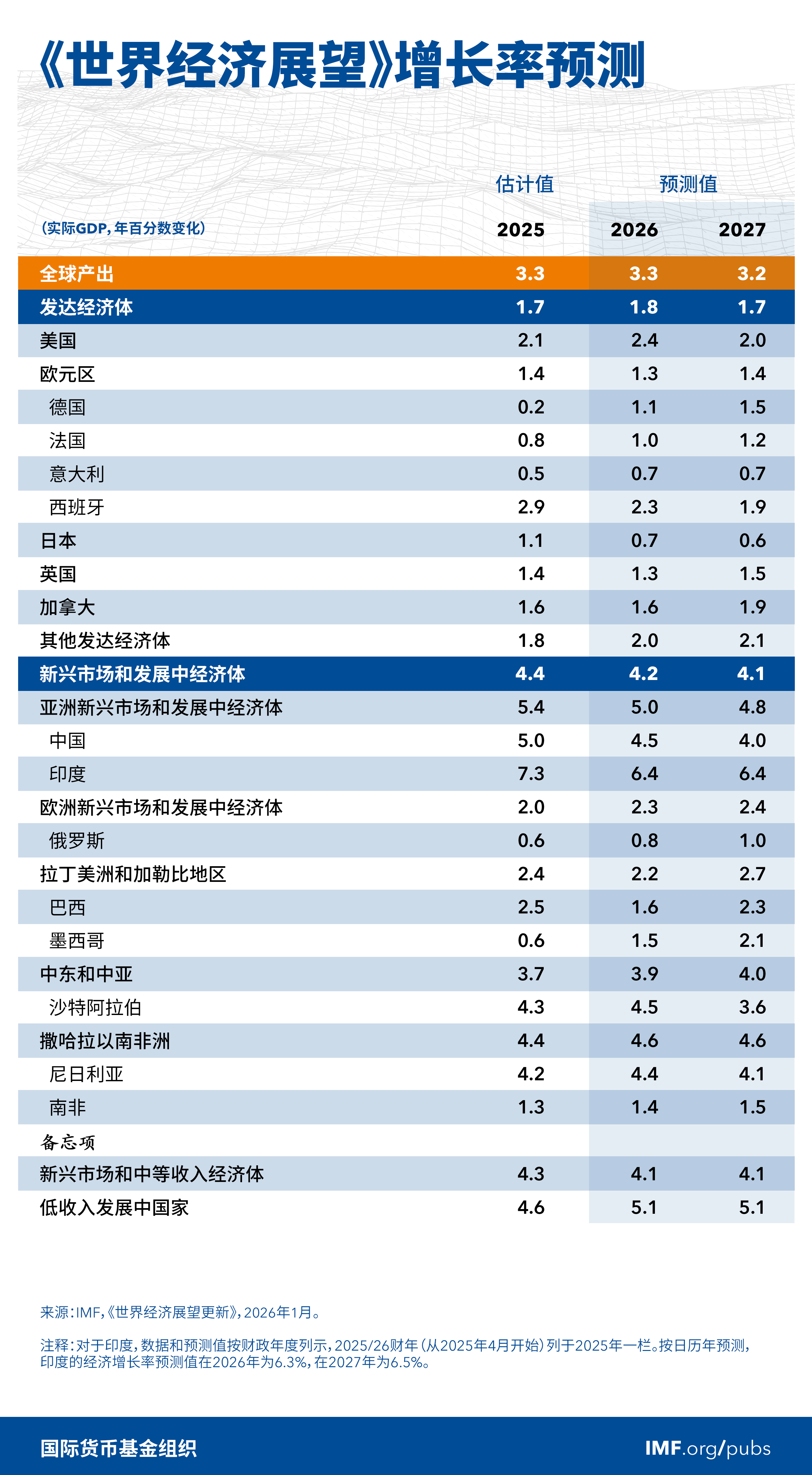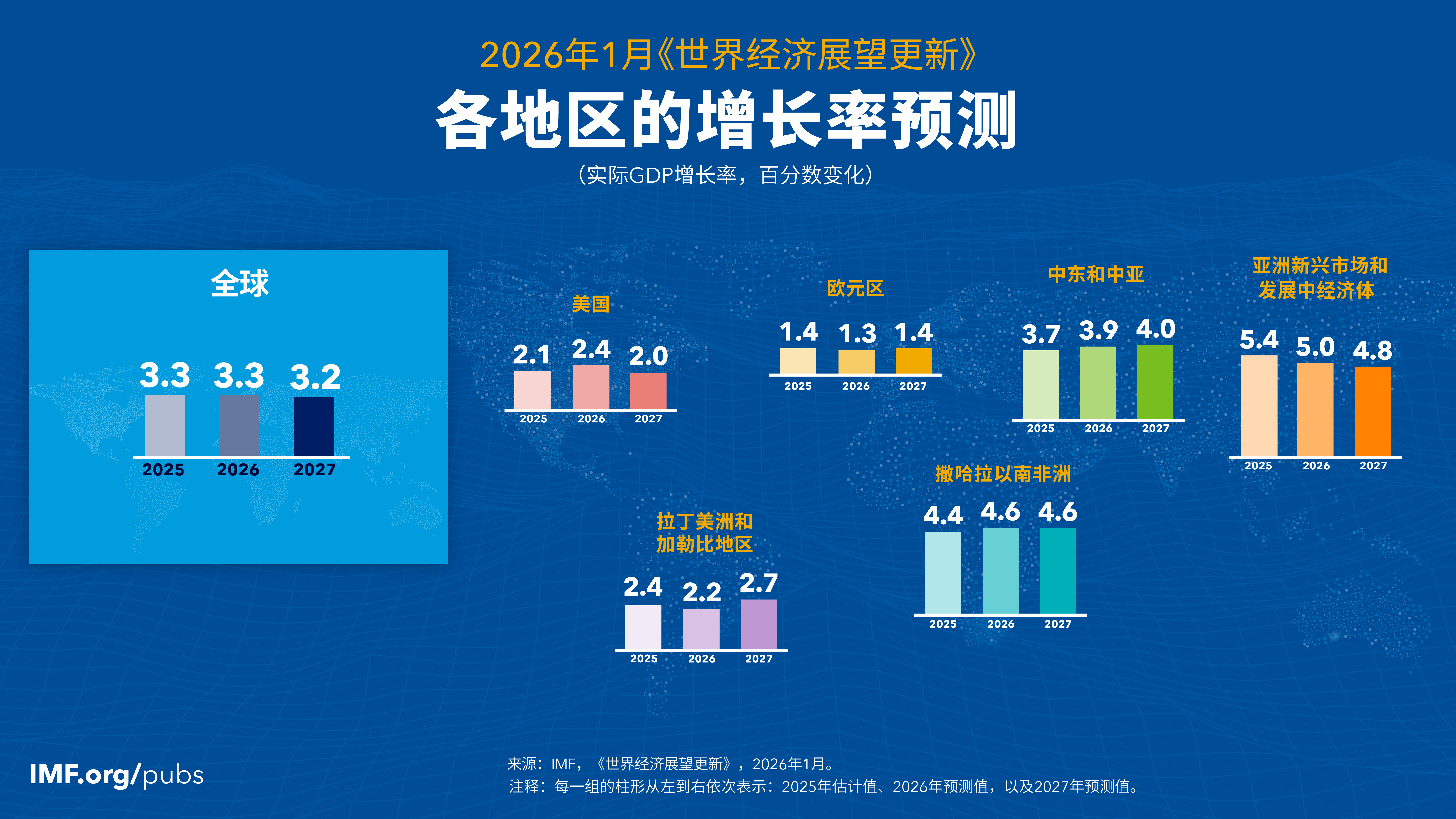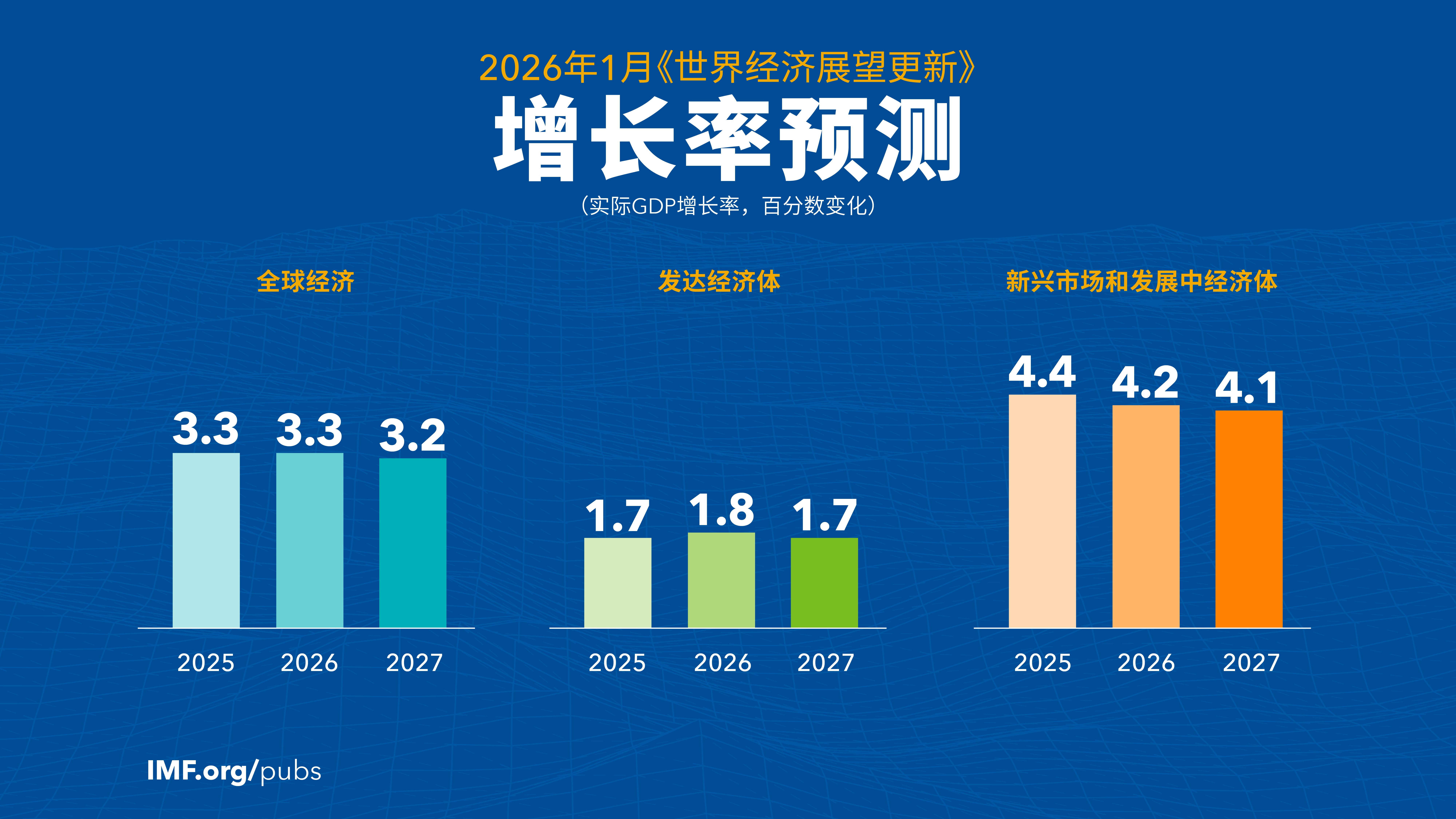 全球经济预计将在2026年增长3.3%,在2027年增长3.2%,较2025年10月《世界经济展望》的预测略有上调。